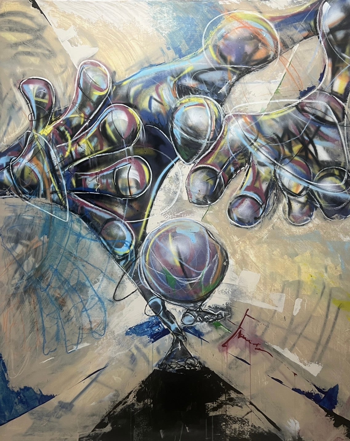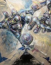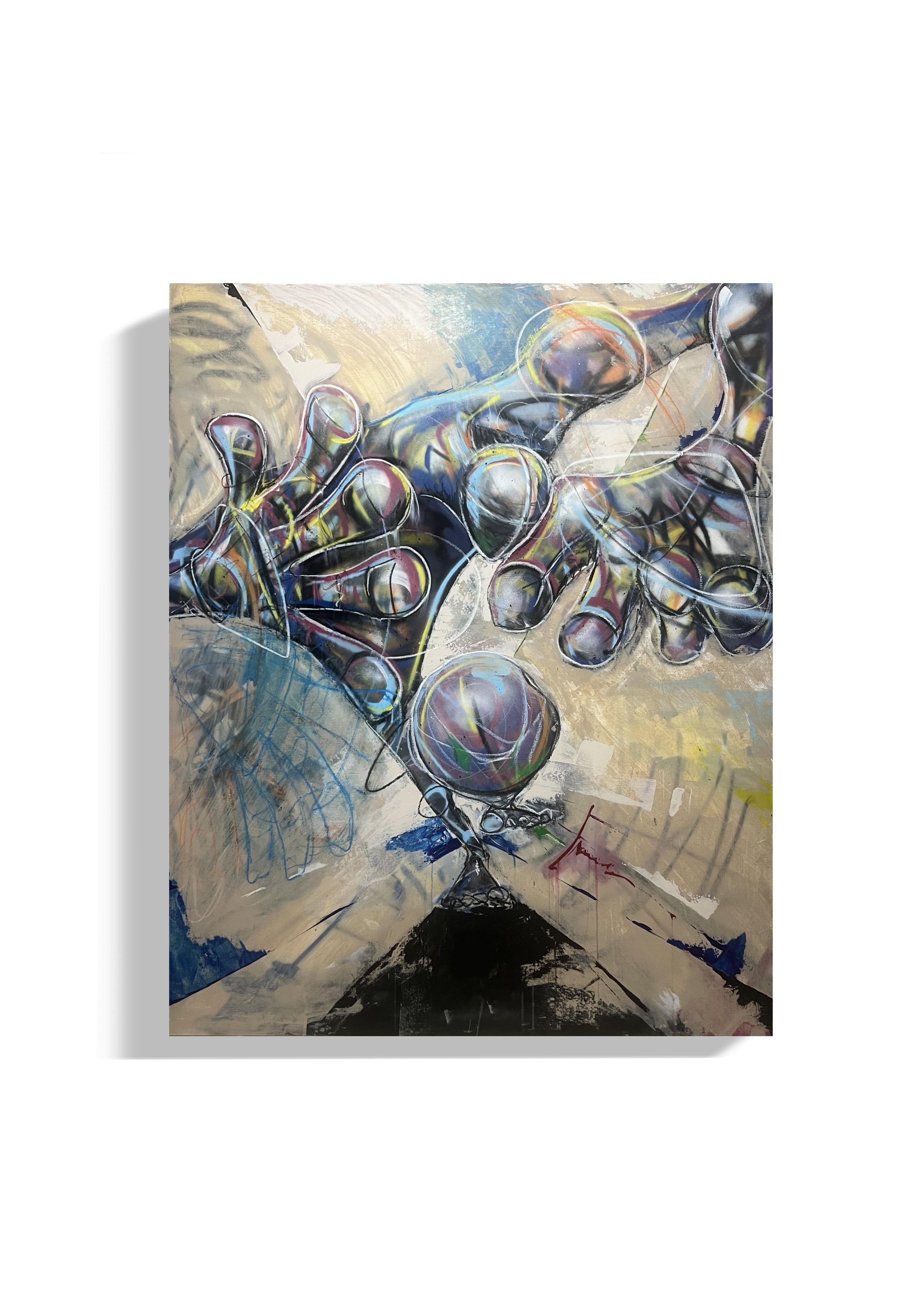 技法:Acrylic/lacquer spray/oil pastel/gesso on canvas