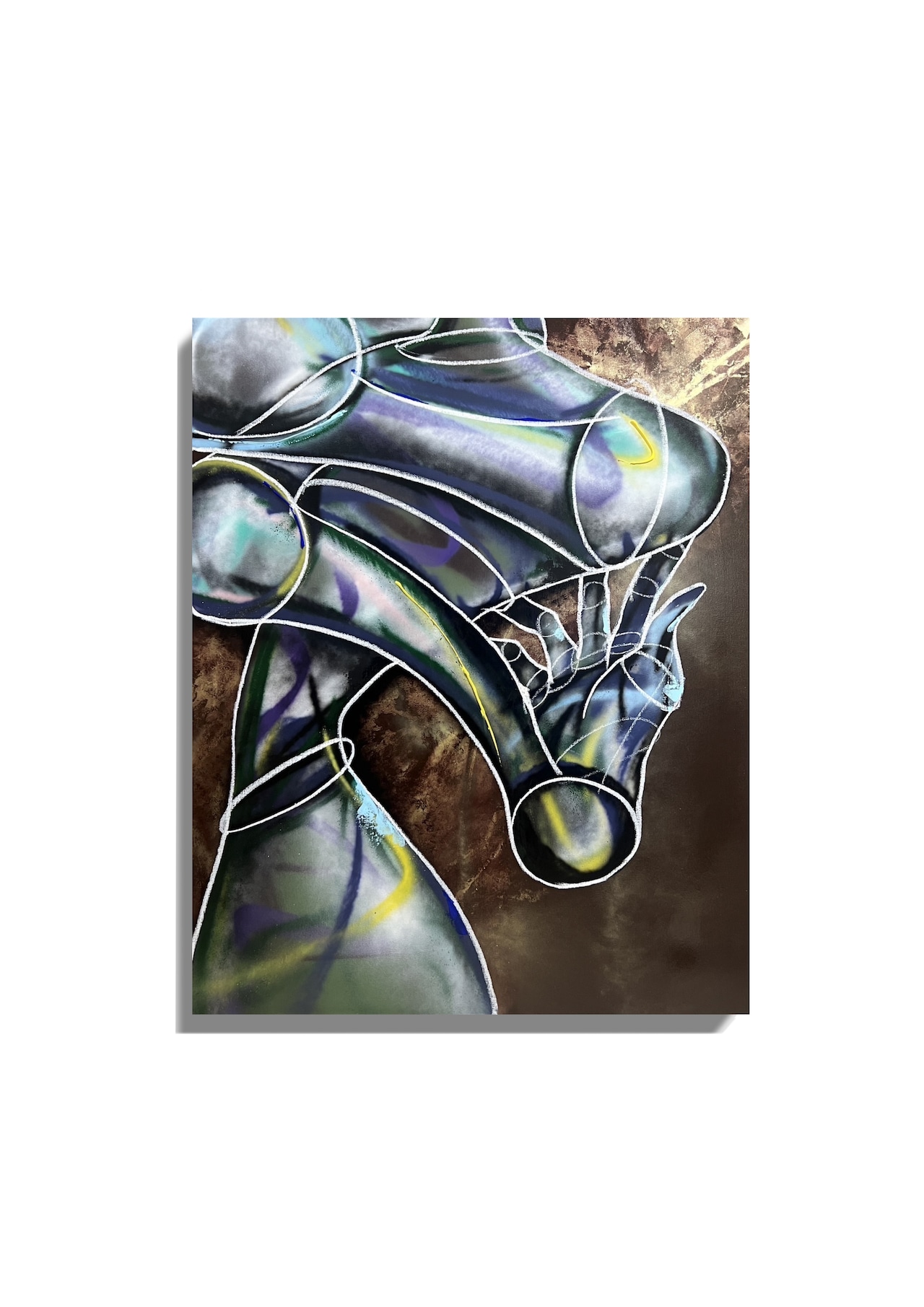 技法:Acrylic/lacquer spray/oil pastel/gesso on canvas