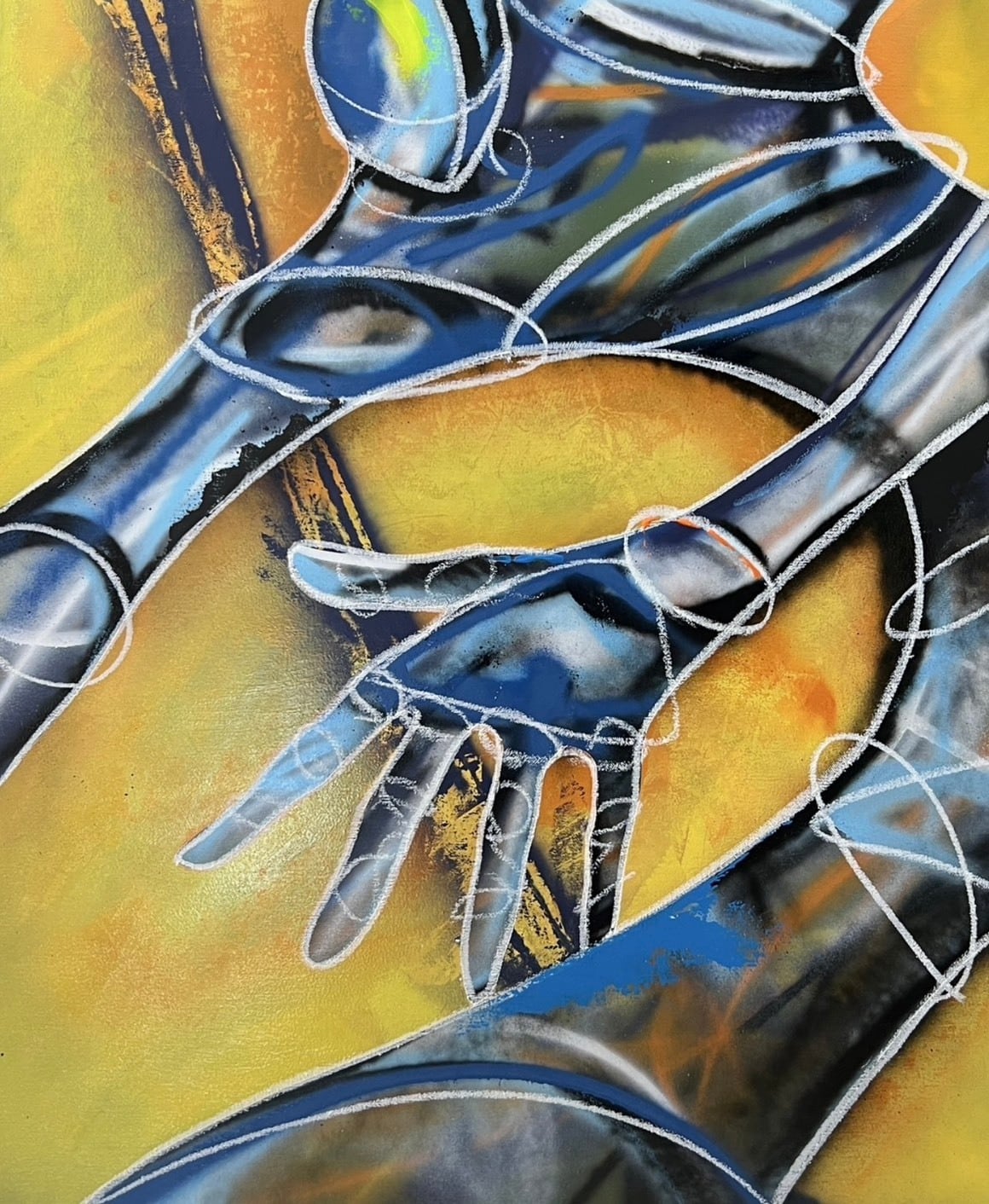 技法:Acrylic/lacquer spray/oil pastel/gesso on canvas