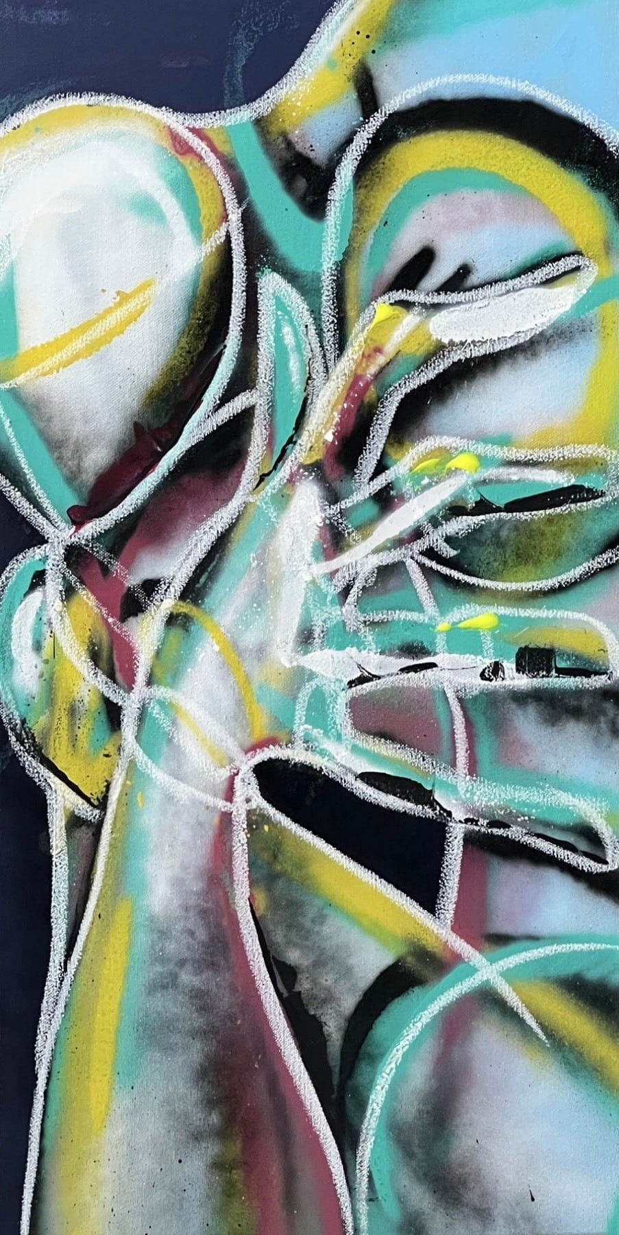 技法:Acrylic/lacquer spray/oil pastel/gesso on canvas